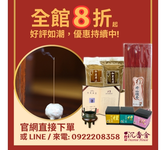 2010年自創品牌,在地並專業的各式香品生產團隊優勢,將傳統香品推廣至海外。專業提供沉香、檀香各式原料及香品、新穎品香道具及配件。