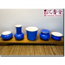 景德鎮手工扒花瓷器組 尊貴藍 JINGDEZEN hand made Incen...