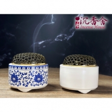 金屬網蓋青花紋陶瓷香爐/聞香杯 可搭配6公分香篆 臥香香插 香道用品