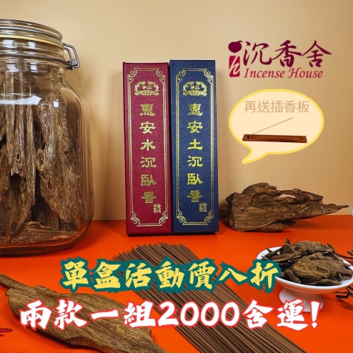 活動組: 微煙惠安水沉臥香 + 微煙惠安土沉臥香 各一盒 再送插香板