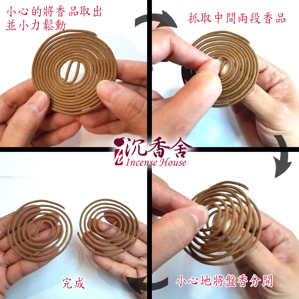 *** 生產小盤香的機器圈數都相同。燃燒時間與環境有關,完全密閉空間,香品可以燃燒更長時間。通風佳,或是風很強的場所,香品燃燒時間會短一些。