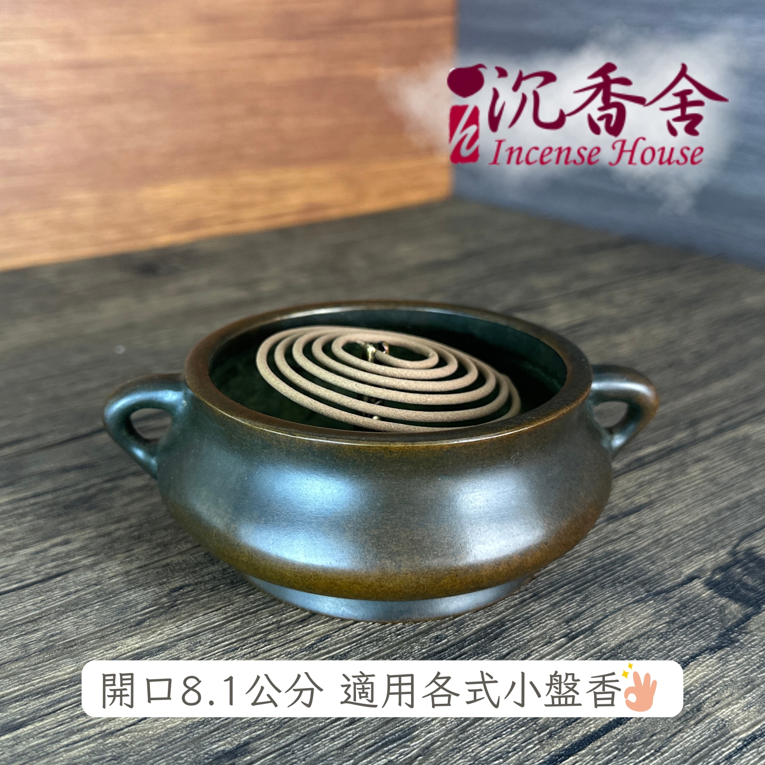 規格:開口直徑 8.1cm(適用各式小盤香;亦可搭配香粉、香塔)