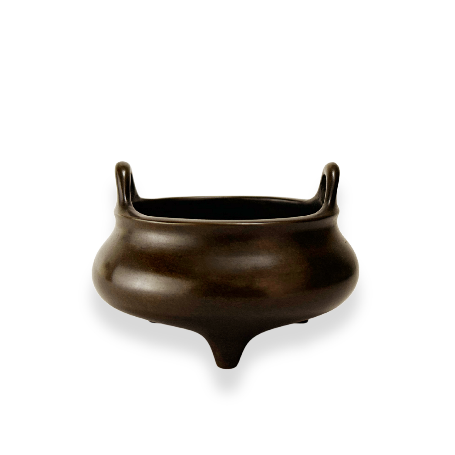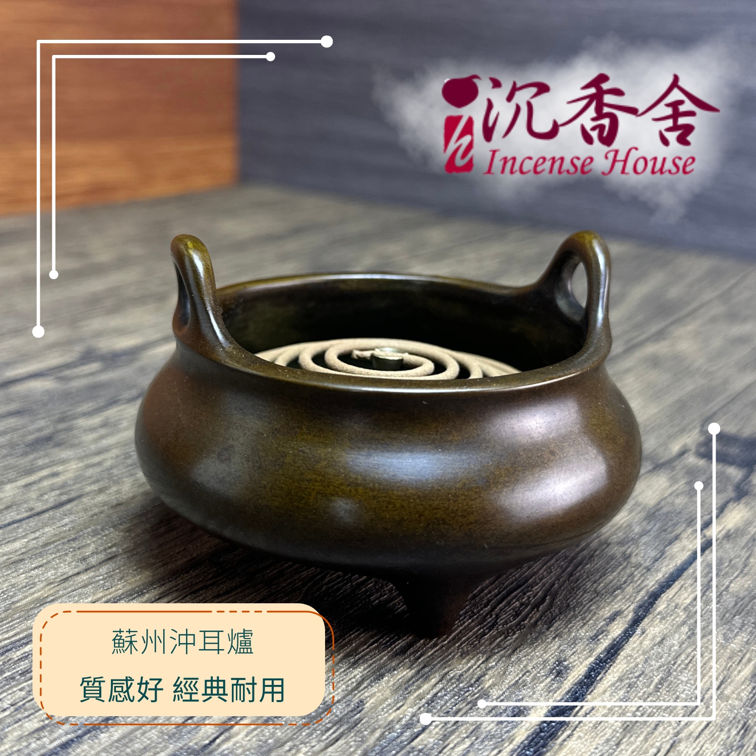 沖耳三足爐自古為香席常用之器,其簡潔大方的造型與穩重的比例令人百看不厭。本款由蘇州銅爐廠製作,經我們嚴格挑選,確保在眾多機器爐與低質仿品中脫穎而出。市面上雖不乏價格低廉的同型爐,本件不僅在用料與手感上勝出,更保有細膩的工藝痕跡與沉穩的古韻,置於書案、茶席、佛堂皆宜,燃香時香煙縈繞,平添幾分雅趣與寧靜。