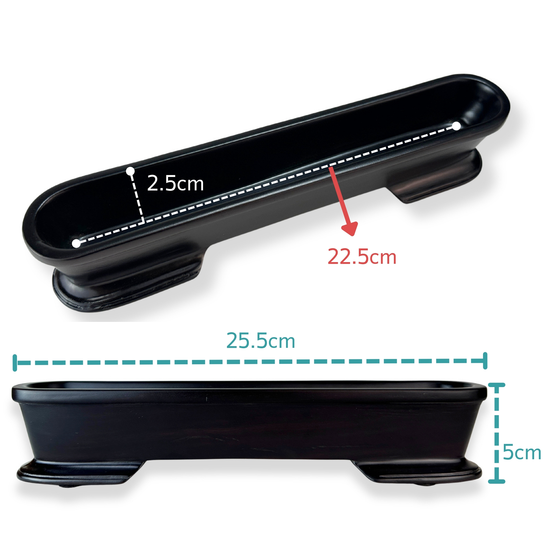 - 尺寸:外徑約25.5 × 3.5 × 5 公分;內槽有效長度約22.5 公分、內槽寬約2.5 公分。